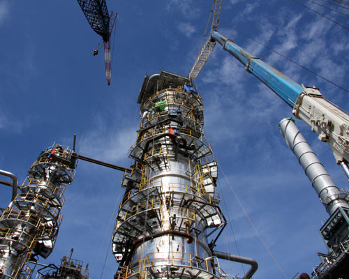 Lắp đặt tháp chưng cất dầu thô của nhà máy lọc dầu