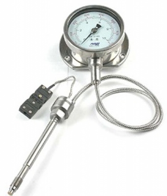 Flexible armor melt pressure gauge with pressure & temperature signal