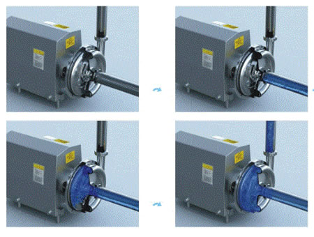 The pump is foraged and with stainless steel motor cover. With sanitary and cost-effective design, it is ideal for dairy, beverage, food processing, pharmaceutical and fine chemical industries. Operating Principles: Housed inside the casing, the impeller rotates in conjunction with the pump shaft. With this arrangement, the impeller blades convey energy to the fluid in the form of kinetic energy and pressure energy.This pump is not reversible by simple reversal of the direction of rotation. The direction of rotation is clockwise when the pump is viewed from the rear side of the motor.