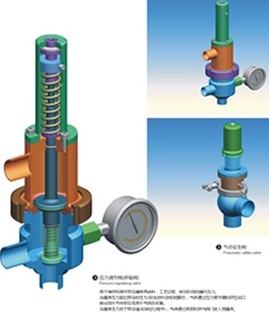 Pressure regulating valve (breathing valve)Operating Principles is used to maintain and regulate the feed tank with pressure, process, emptying the pressure within the filling stage. When the tank pressure exceeds the preset pressure (such as feed or fermentation), gas pressure relief through the regulator are discharged into the atmosphere in the pressure relief or for gas collection.