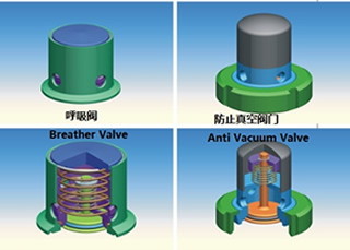 These valves can be applied to the pharmaceutical, food processing, beverage, brewing a variety of chemical containers and piping, to ensure the safe use of these devices, respiratory and pressure vacuum valve to prevent the excretion of the specific function of a vacuum container to prevent the vacuum valve open automatically when the container pressure overload exhaust valve opens automatically.