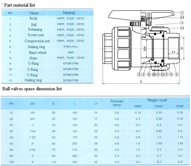 Vật liệu : PTFE - FRPP - PVDF - CPVC - UPVC - PP | SP0301.02 : Van bi nhựa - Thread Ball Valve - BLSJ - BAODI Van bi nhựa - Thread Ball Valve