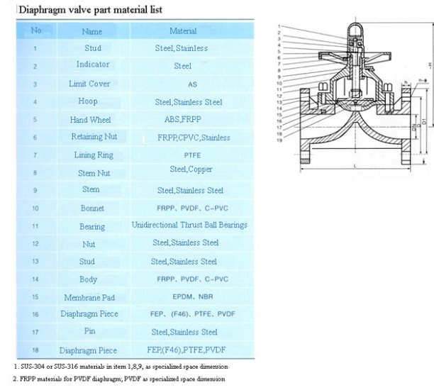 Vật liệu : PTFE - FRPP - PVDF - CPVC - UPVC - PP | SP0305.02 : Van màng nhựa - Diaphragm valve - BLSJ - BAODI Van màng nhựa - Diaphragm Valve
