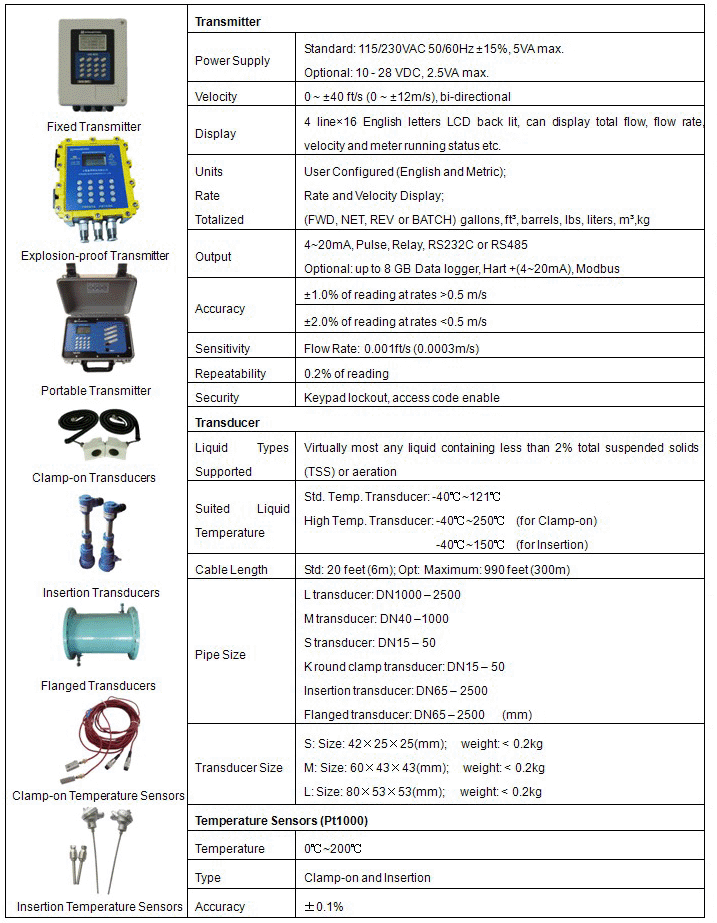 2. For transducer, non-invasive Clamp-on and Insertion type are available.