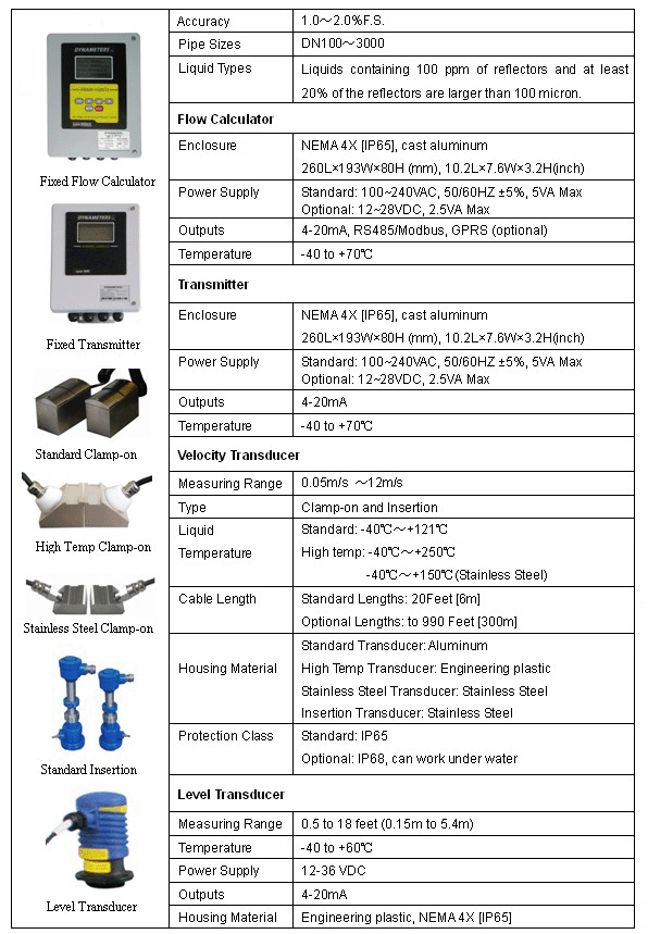 Series DMDF-OP-A flow meter include flow calculator, transmitter, velocity transducer and level transducer.